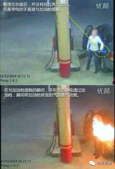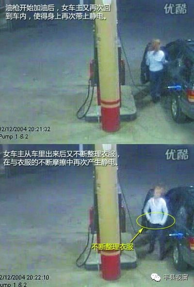 女子加油过程中曾回到了车内。(解析:车内因为干燥,静电较多,是静电的一大“生产基地”)